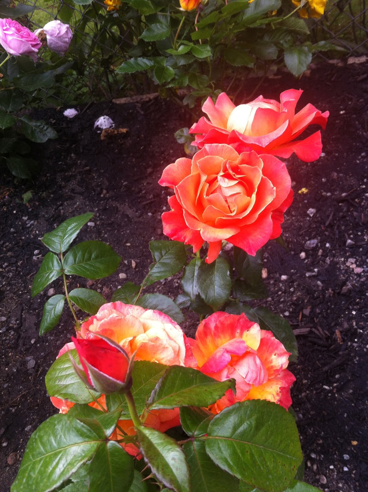 Vi fikk lyst til å lage et nytt rosebed selv. Vi hugde ned noen busker og lagde et høyt rosebed med to lag med stein. Jord fra Grønnmo. Synes dette ble veldig fint.
