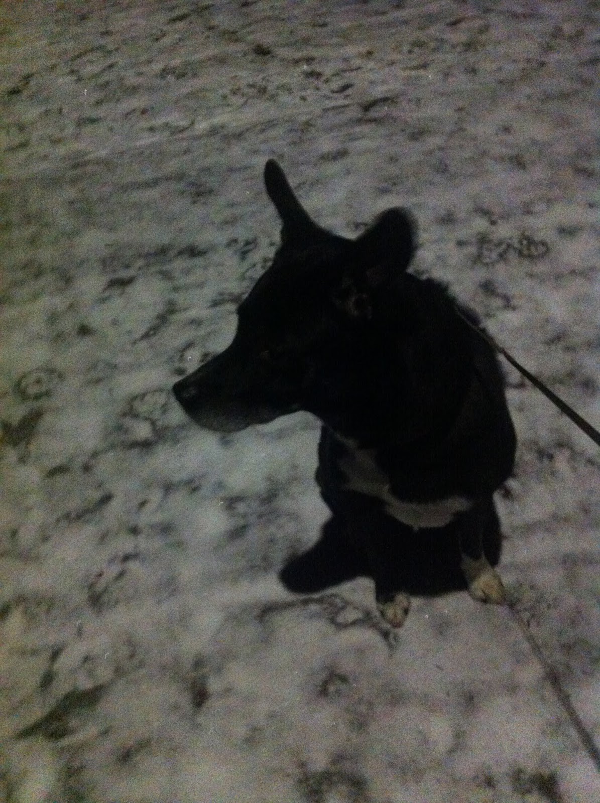 En liten stund var det snø, Nå er det svart og trist. Jimmi har fått litt rim i pelsen.
